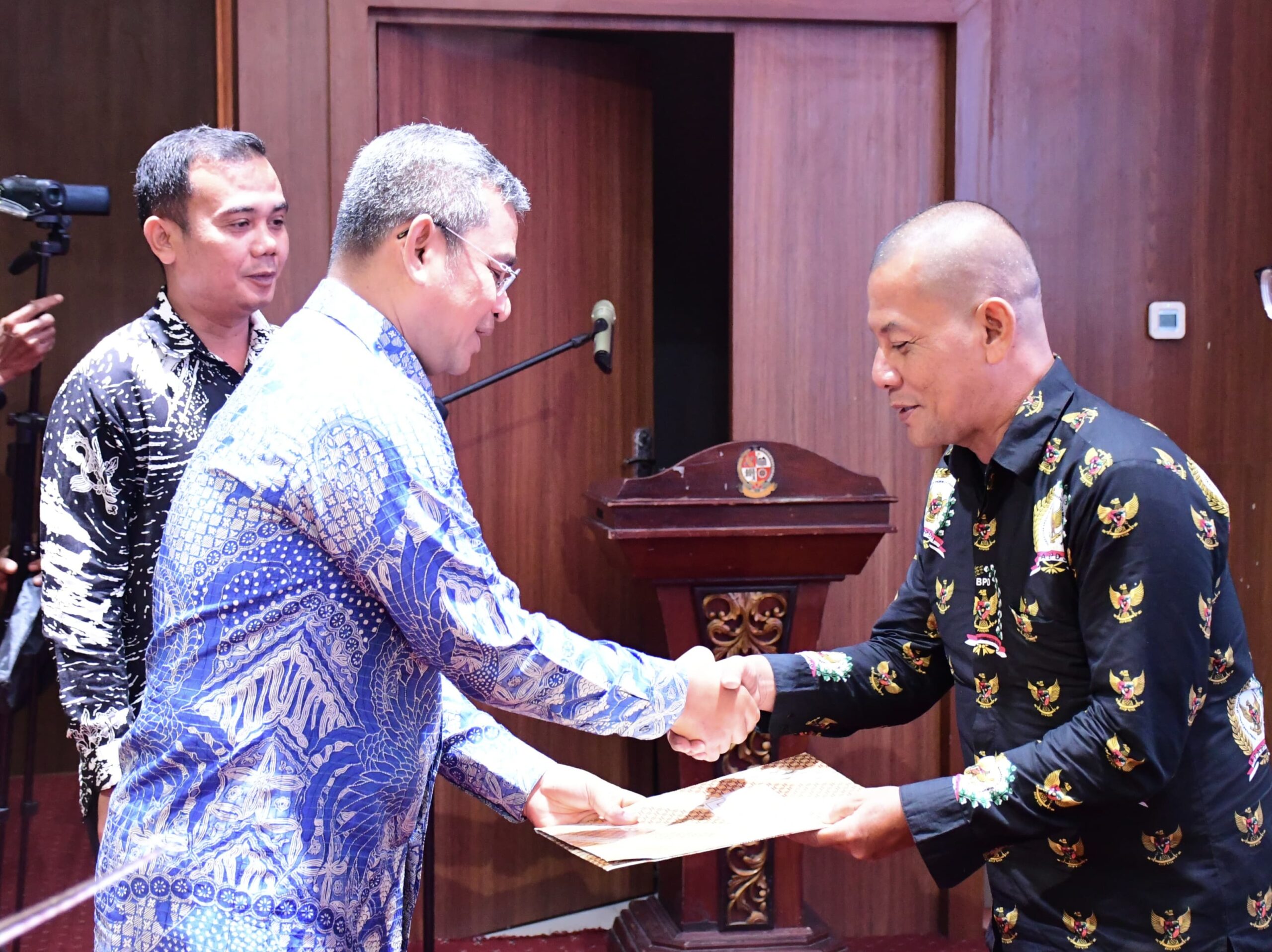 Penjabat (Pj) Bupati Deli Serdang, Ir Wiriya Alrahman MM menyerahkan Surat Keputusan (SK) Perpanjangan Masa Jabatan kepada 2.617 Anggota Badan Permusyawaratan Desa (BPD) Periode 2020-2026 menjadi 2020-2028 di Grha Bhineka Perkasa Jaya, Jalan Medan-Lubuk Pakam, Jumat (14/2/2025).